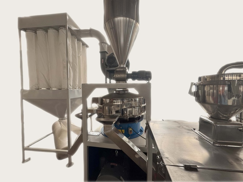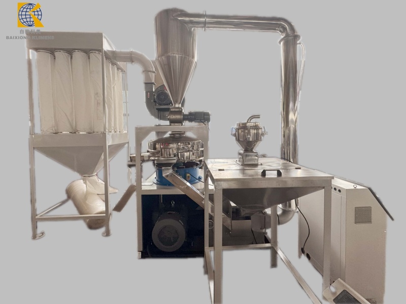 应用材料为 EVA, PP, PET 粒子或碎片,原料尺寸不超过 12mm, 成品粉的目数在 20-80 之 间。粉的目数可以调节。
