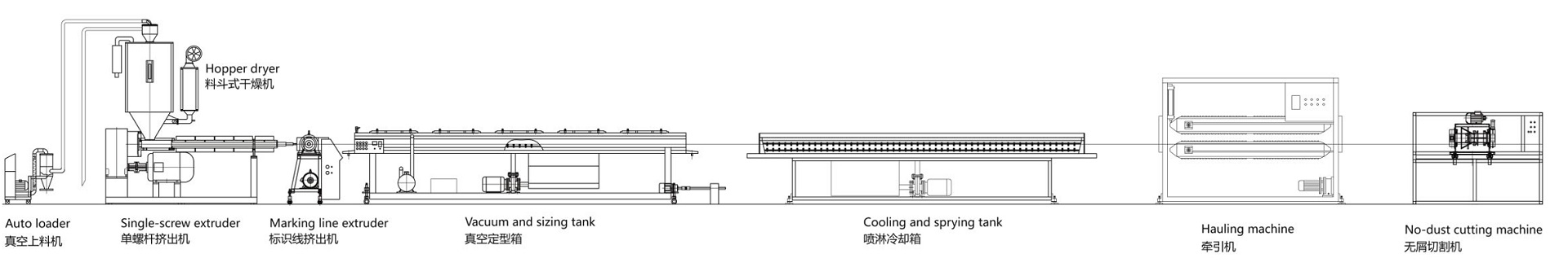 ? 可装配标识线专用挤出机,生产符合国家标准要求的带色标线的管材。