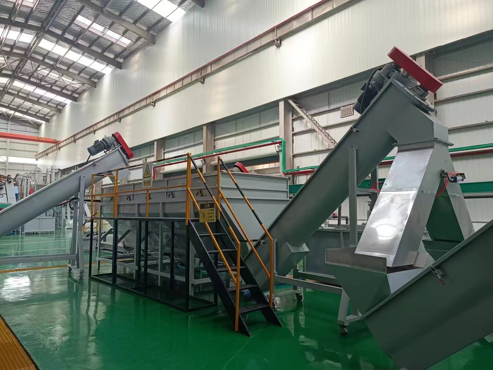 塑料破碎清洗分选生产线,用于处理废旧铅酸蓄电池经破碎拆解分选后产生的塑料,该生产 线具有色选选净率高、杂质分离效果好、污水排放量低等优点。