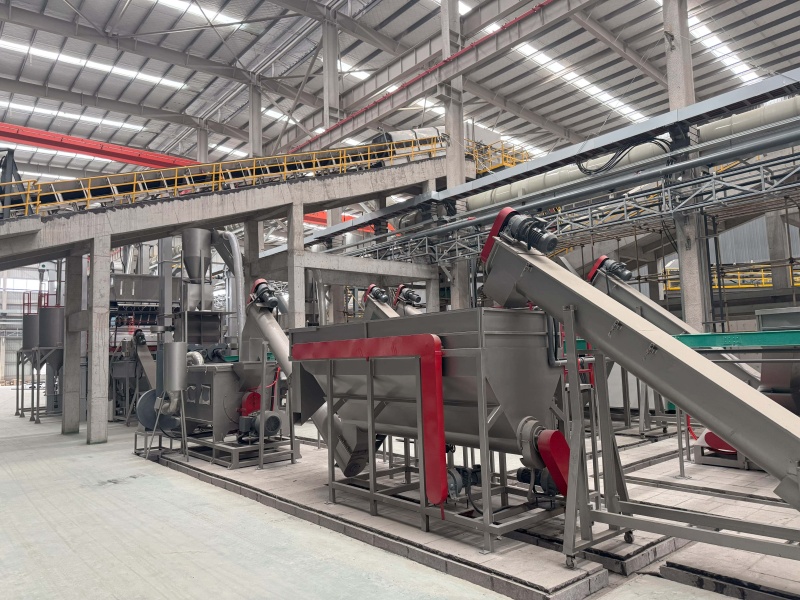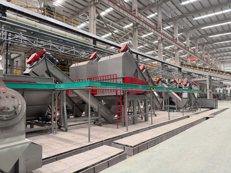 塑料破碎清洗分选生产线,用于处理废旧铅酸蓄电池经破碎拆解分选后产生的塑料,该生产 线具有色选选净率高、杂质分离效果好、污水排放量低等优点。