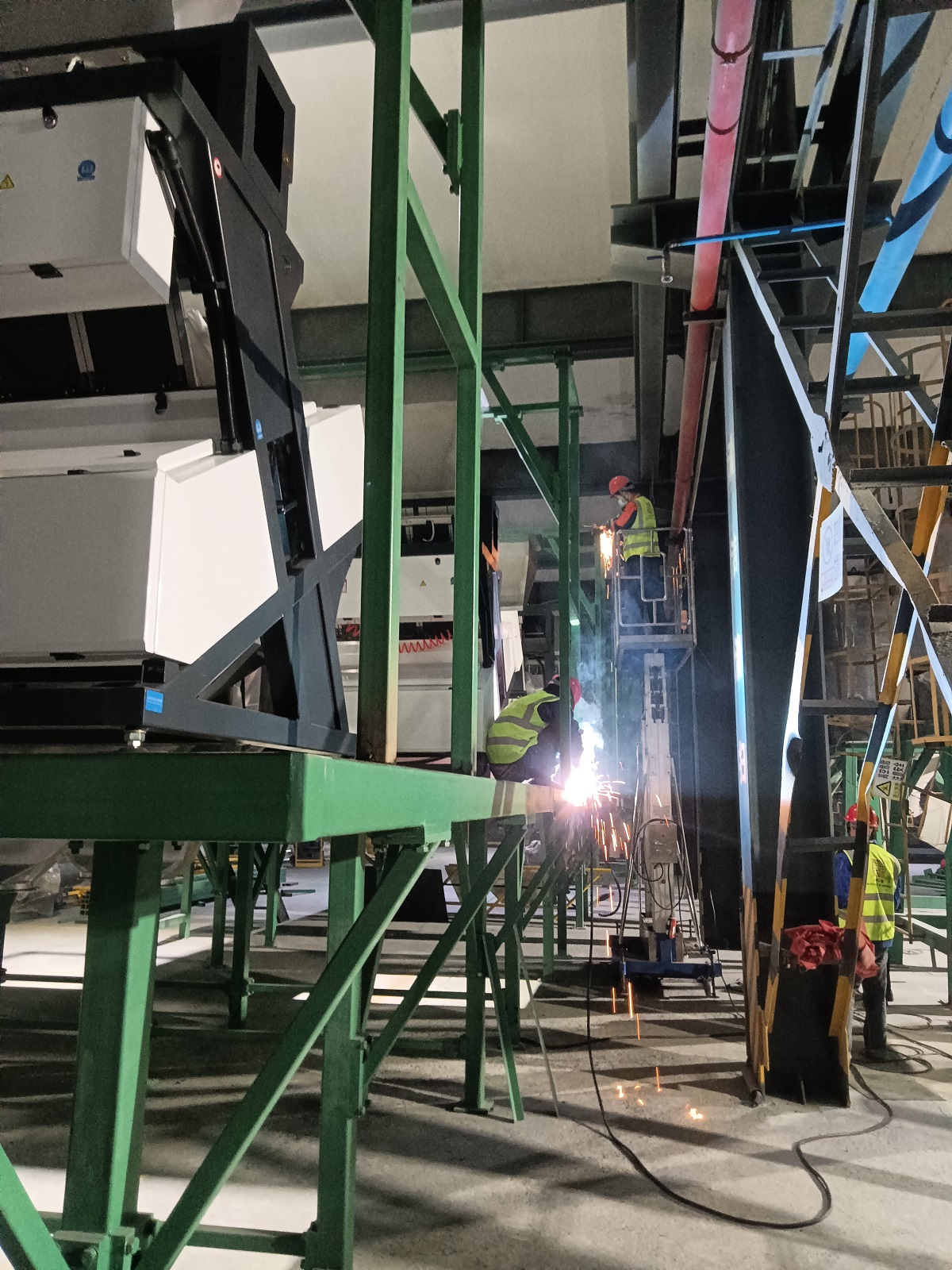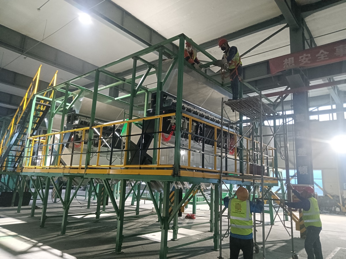 客户公司的塑料破碎清洗分选生产线(4T/h)的安装工作已完成过半。这条生产线旨在高效处理和回收塑料废料,预计在安装完成后将进入全面调试阶段。